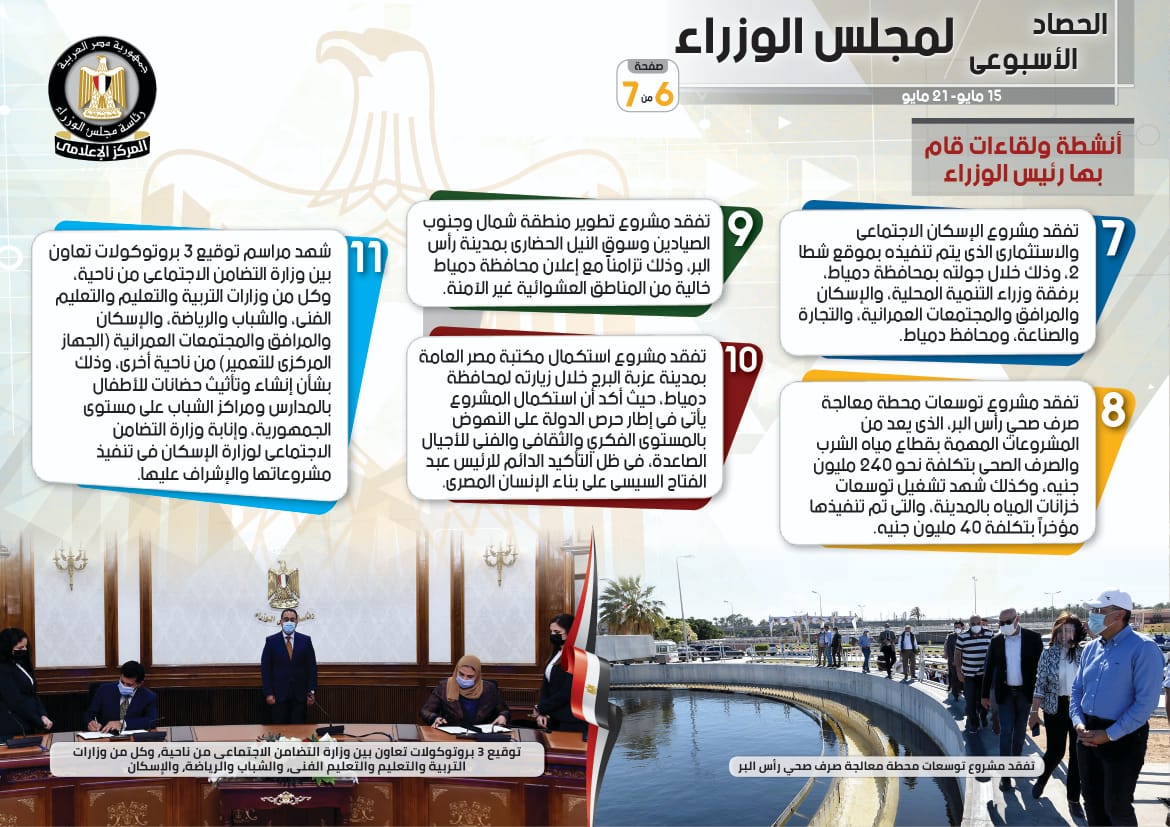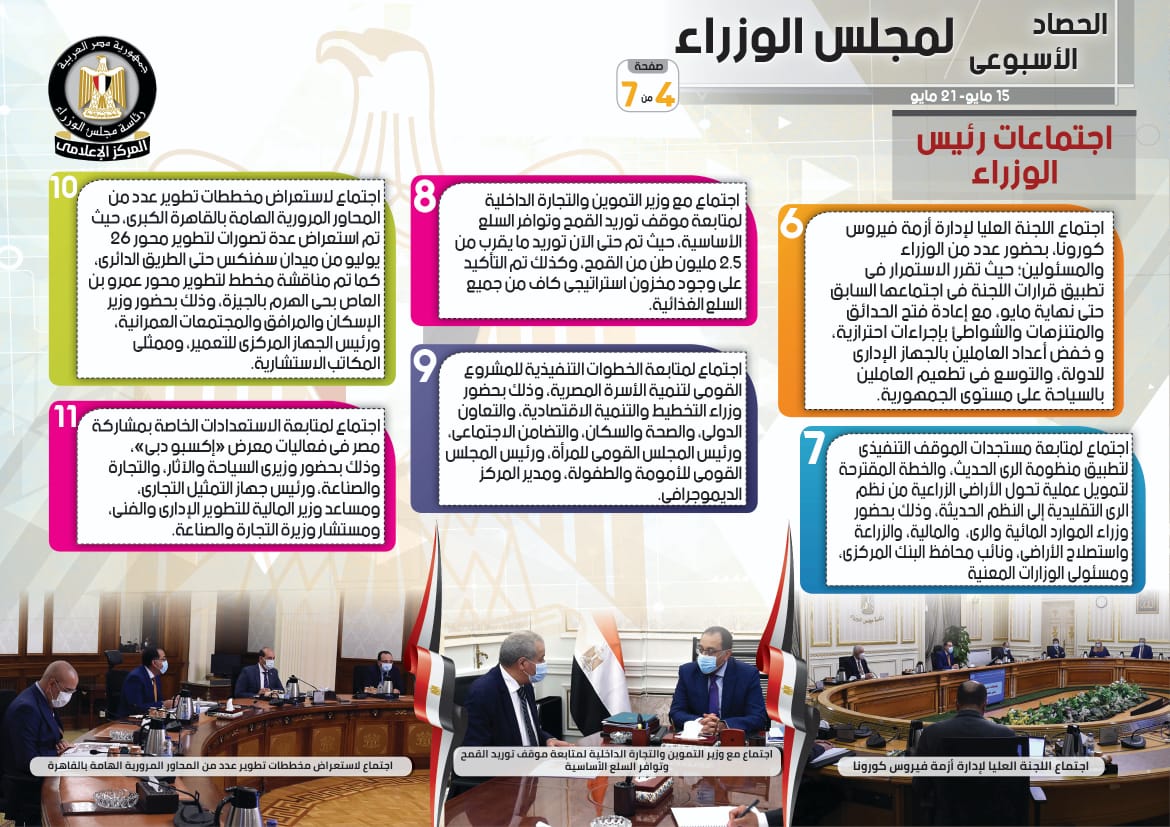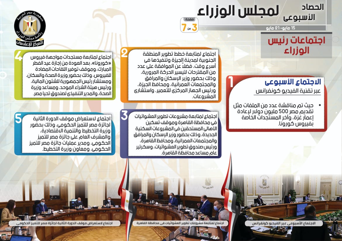 الحصاد الأسبوعي لمجلس الوزراء خلال الفترة من 15 حتى 21 مايو 2021 (إنفوجراف)