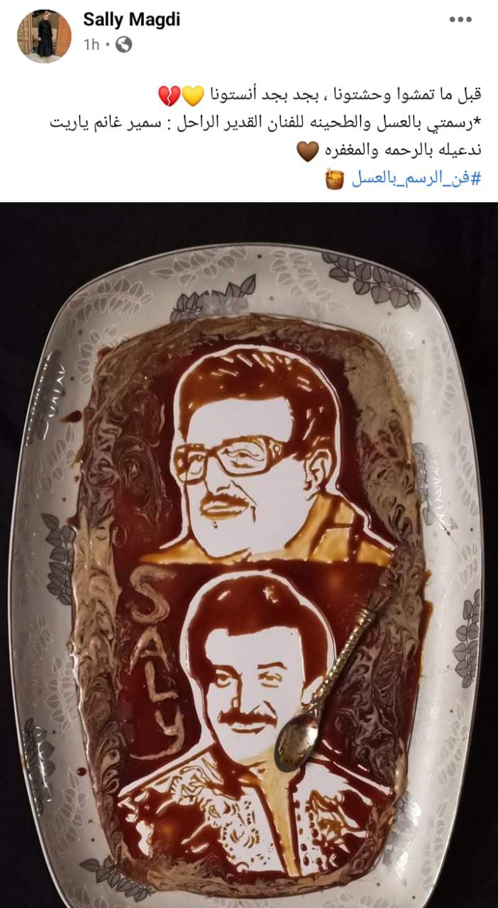 من جانبها ودعت فتاة تدعى سالي مجدي، 25 عاما، تخرجت في كلية الاقتصاد والعلوم السياسية، الفنان سمير غانم بطريقة فريدة من نوعها، عن طريق رسمة له بالعسل.