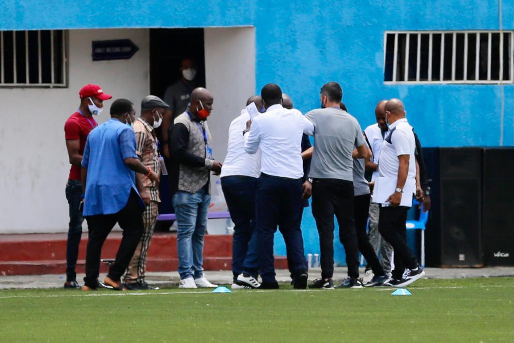 ونشبت أكثر من مشادة ومشاجرة افتعلها مسئولو وجماهير أنيمبا مع الجهاز الإداري لبيراميدز، وتدخل الأمن لفضها والفصل بين الطرفين في ظل تعنت شديد تجاه البعثة.