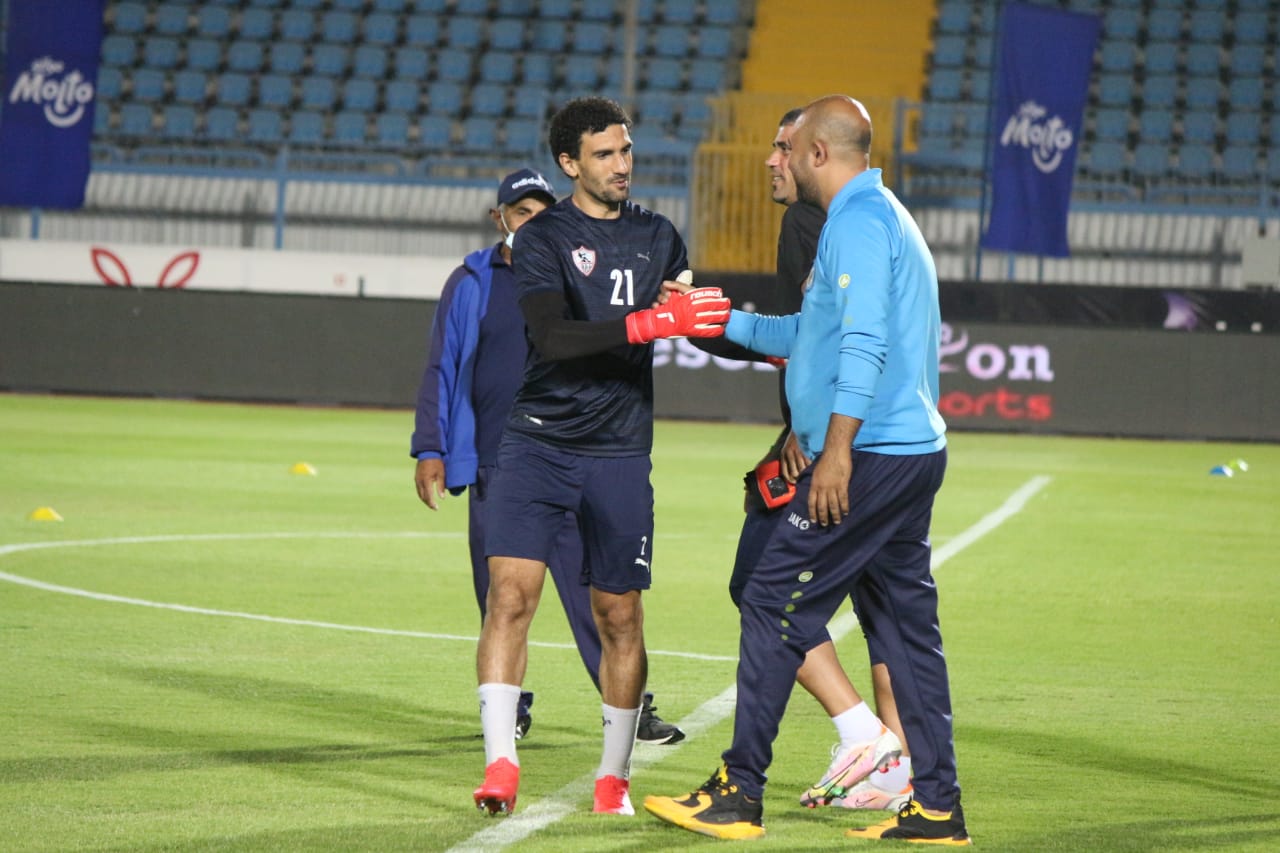 عواد يصافح حراس الإسماعيلي قبل انطلاق المباراة