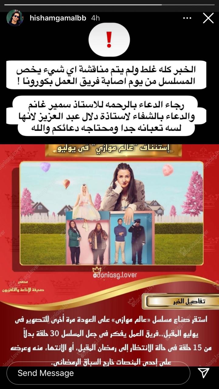 وأشار المنتج عبر حسابه بموقع انستجرام إلى أن كل ما قيل حول هذا الأمر وتم نشره بأحد المواقع خاطئ تماما، حاسما أمر هذه الشائعات إذ كتب: كله غلط.. ولم يتم مناقشة أي شيء بخصوص المسلسل منذ إصابة فريق العمل بفيروس كورونا.