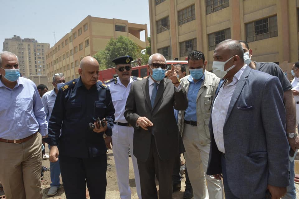 محافظ الجيزة يتابع عمليات إطفاء حريق مخزن إشغالات حي الهرم