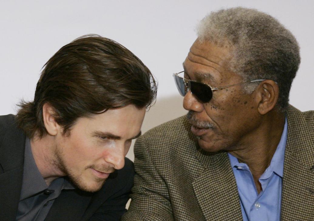 مورجان فريمان وكريستيان بايل يتحدثان خلال مؤتمر صحفي عن أحد أجزاء سلسلة باتمان "فارس الظلام "، في هونج كونج يوم 9 نوفمبر 2007.