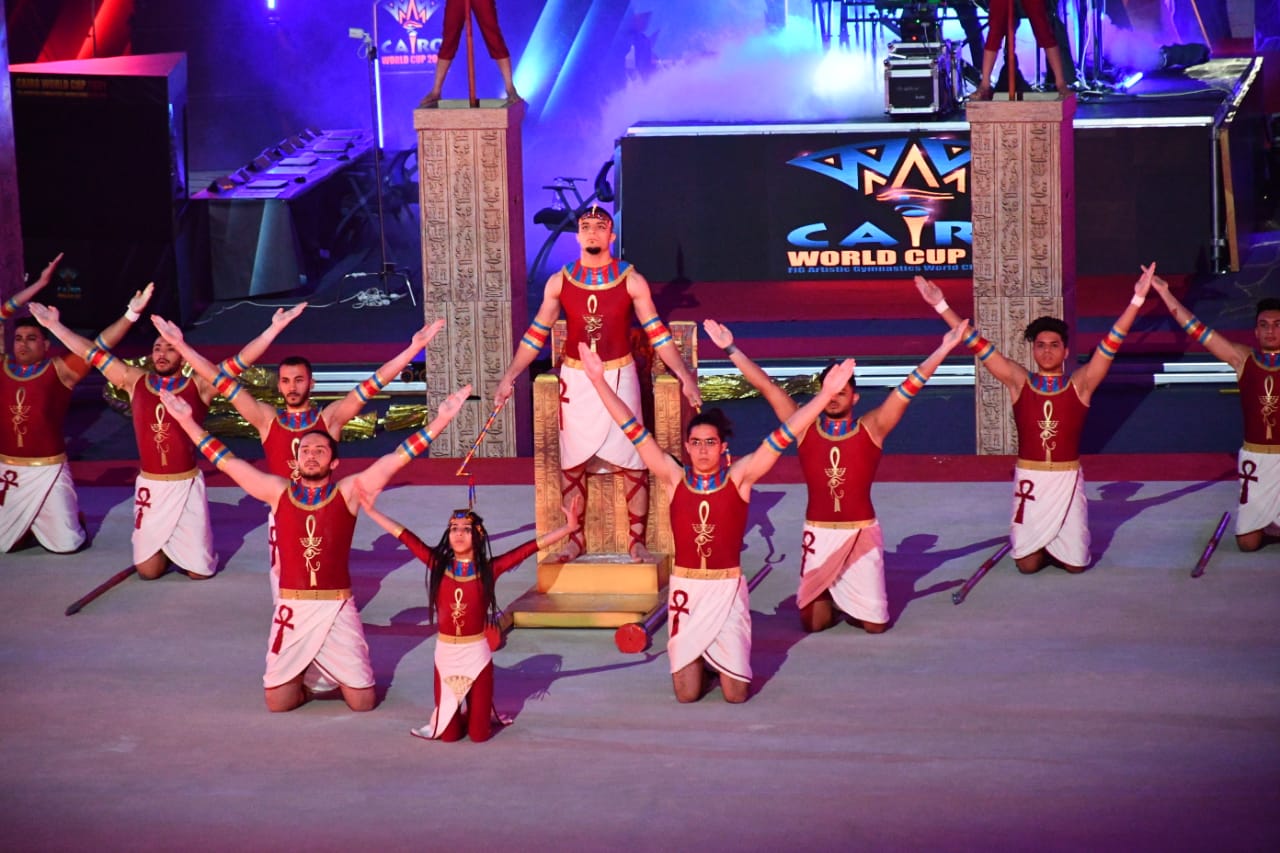 بدأ الحفل بعزف السلام الجمهوري لجمهورية مصر العربية، وتخلل الحفل عرض فيلم تسجيلي عن تطور لعبة الجمباز بدءًا من الفراعنة، والذي أكدتها النقوش الفرعونية منذ أربعة آلاف عام، مرورًا بالعديد من الدول، وصولًا للوقت الحالي واستقرار بطولة العالم بمصر.