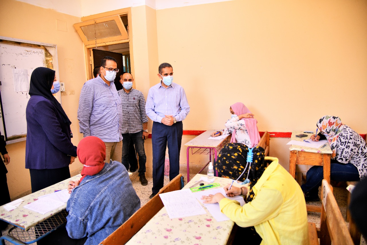 واطمأن المحافظ، خلال جولته في المدارس، على عدم وجود أي شكاوى من الطلاب، إلى جانب التأكد من تطبيق كافة الإجراءات الاحترازية للوقاية من فيروس كورونا المستجد من توفير الكحول، والكمامات، وتحقيق التباعد باللجان، والتزام المراقبين بهذه الإجراءات.