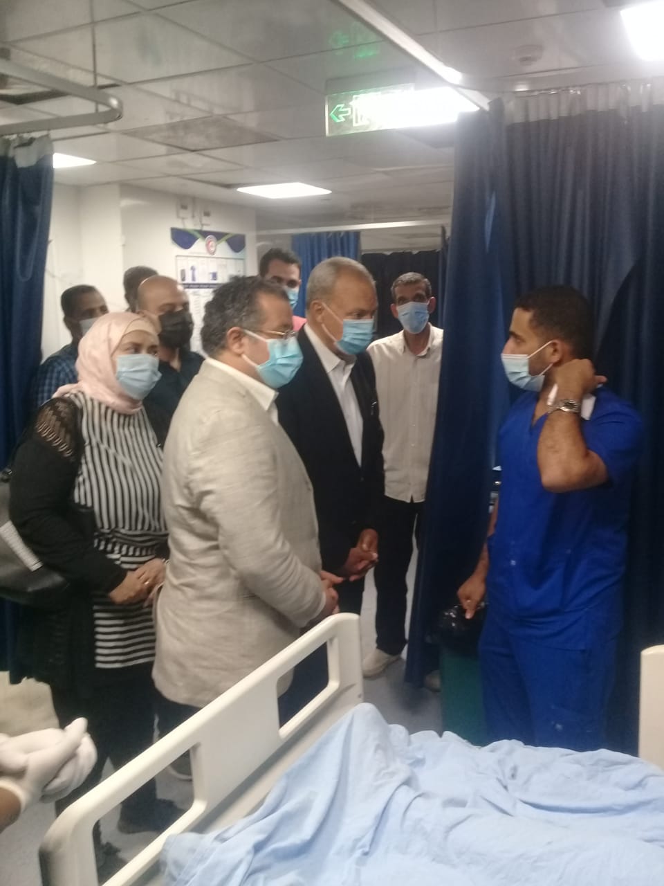 توجه اللواء عبد اللواء عبد الحميد الهجان، محافظ القليوبية، رفقة السكرتير العام المساعد، ومديرة هيئة الأبنية التعليمية بالتوجه لمستشفى جامعة بنها، في ساعة متأخرة من الليل لمتابعة الحالة الصحية للعامل مصطفى طلعت فرغلي حسين، والذى أصيب بالأمس، أثناء تأدية عمله في تطوير واجهة مبنى الديوان العام للمحافظة، في إطار أعمال التطوير التي تتم بالمبنى ويشرف على تجديده هيئة الأبنية التعليمية.