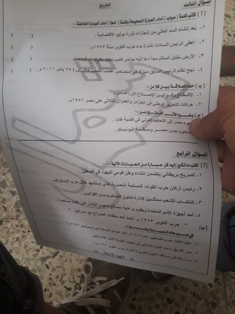وحصل “القاهرة 24”، على صورة من امتحان مادة الدراسات الاجتماعية للشهادة الإعدادية، بعد خروج الطلاب من اللجان منذ قليل.