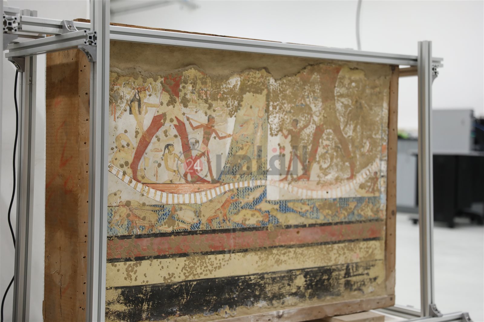 وأشار إلى أن مشروع ترميم ونقل اللوحات كان بالتعاون بين فريق المتحف المصري الكبير والجانب الياباني المشترك “JICA”، مشيرًا إلى أن الجانبين مشتركان في ترميم اللوحات ونقلها من المتحف المصري بالتحرير إلى المتحف الكبير، حيث إن اللوحات كانت مبنية من الطوب اللبن ووزن كل لوحة يتراوح بين 200 إلى 450 كم.