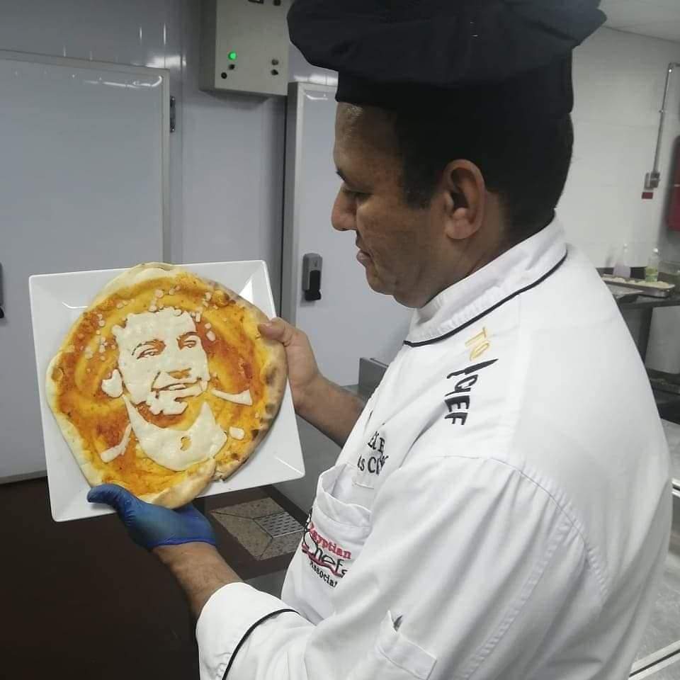 شيف المشاهير بالغردقة يرسم محمد صلاح على بيتزا