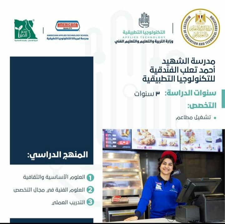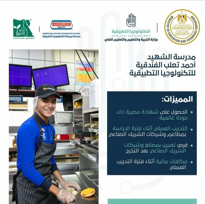 التعيين فور التخرج.. ننشر تفاصيل الالتحاق بمدرسة الشهيد أحمد تعلب الفندقية للتكنولوجيا التطبيقية