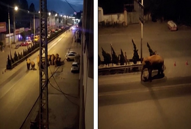 قطيع أفيال "سكران" يتجول في الشوارع بالصين (صور)