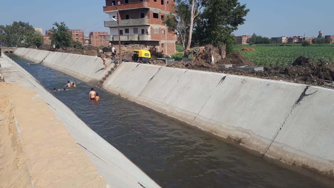 وأظهرت بعض الصور، تجمع عدد من أطفال قرية بابل في المنوفية، يتنافسون في السباحة داخل الترعة، مع تشجيع آخرين على جانبيها، للاستمتاع بالإجازة، عقب الانتهاء من أعمال التبطين.