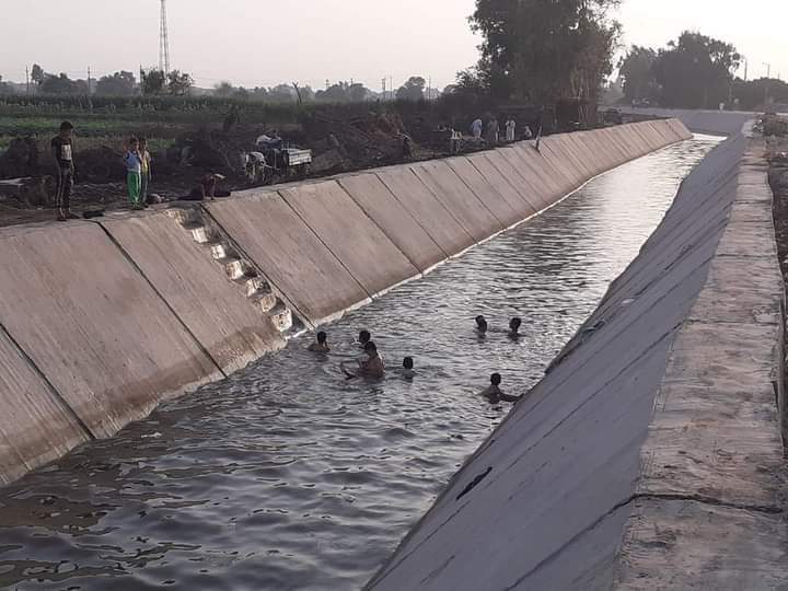 أطفال تلا داخل ترعة مبطنه في بابل