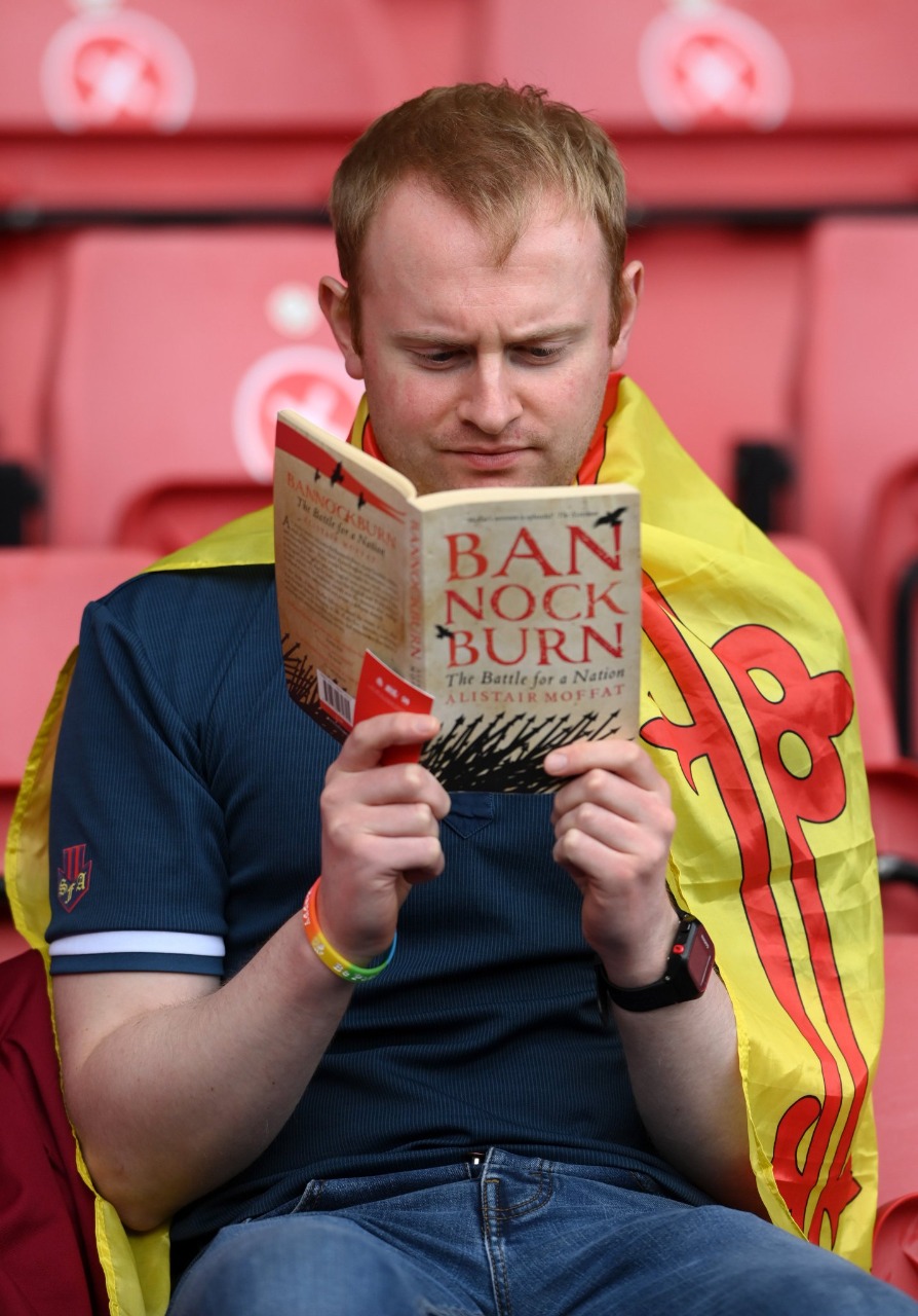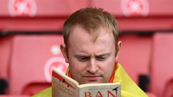 ظهر أحد المشجعين الاسكتلنديين يقرأ كتاب "هزيمة اللغة الإنجليزية" في مدرجات هامبدن بارك في مدينة جلاسكو الاسكتلندية، وذلك قبل انطلاق مباراة اسكتلندا والتشيك في منافسات الجولة الأولى للمجموعة الرابعة من "يورو 2020".