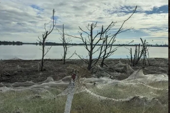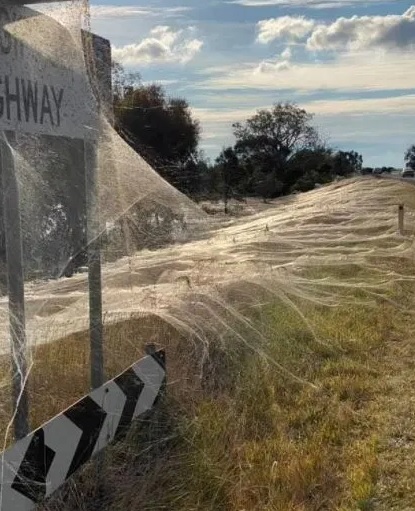 أنسجة العنكبوت تغطي الريف الأسترالي بسبب برودة الطقس (صور)
