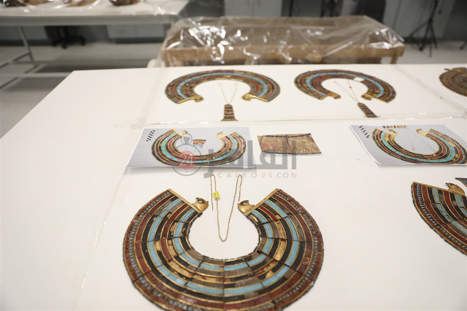 وأوضح مصادر بالمجلس الأعلى للآثار، لـ"القاهرة 24"، القطع التي تم الانتهاء من ترميمها، ومنها قطع الملك توت عنخ آمون التي تم نقلها من مختلف المتاحف والمخازن الأثرية وتشمل القلادات المذهبة بمختلف أنواعها وقطع الألباستر الخاصة بالملك والقطع الخشبية والمذهبة كالتالي: