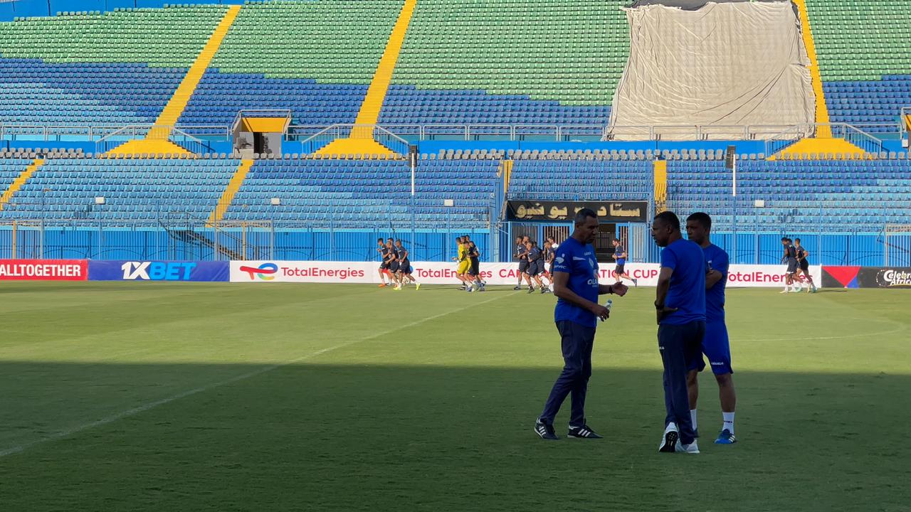 وخاض الفريق مرانه لمدة ساعة على الملعب الرئيسي للدفاع الجوي، وشهد العديد من التجهيزات للمواجهة الهامة الصعبة، من خلال تدريبات بدنية وتقسيمة بطول الملعب، وفرض المدرب السرية التامة على اللقاء بعدما سمح بوجود الإعلام لمدة 15 دقيقة طبقا لتعليمات الاتحاد الإفريقي.