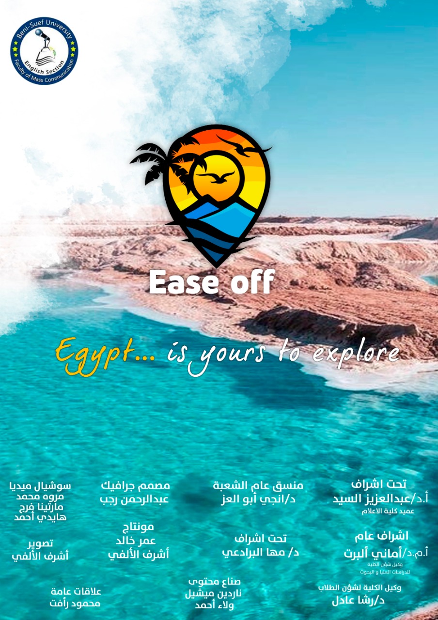 حصد مشروع تخرج "Ease Off"، المركز الأول ضمن مشروعات التخرج الخاصة بشعبة اللغة الإنجليزية بكلية الإعلام جامعة بني سويف، حيث يركز المشروع على التوعية بالسياحة الثقافية والأثرية في مصر.
