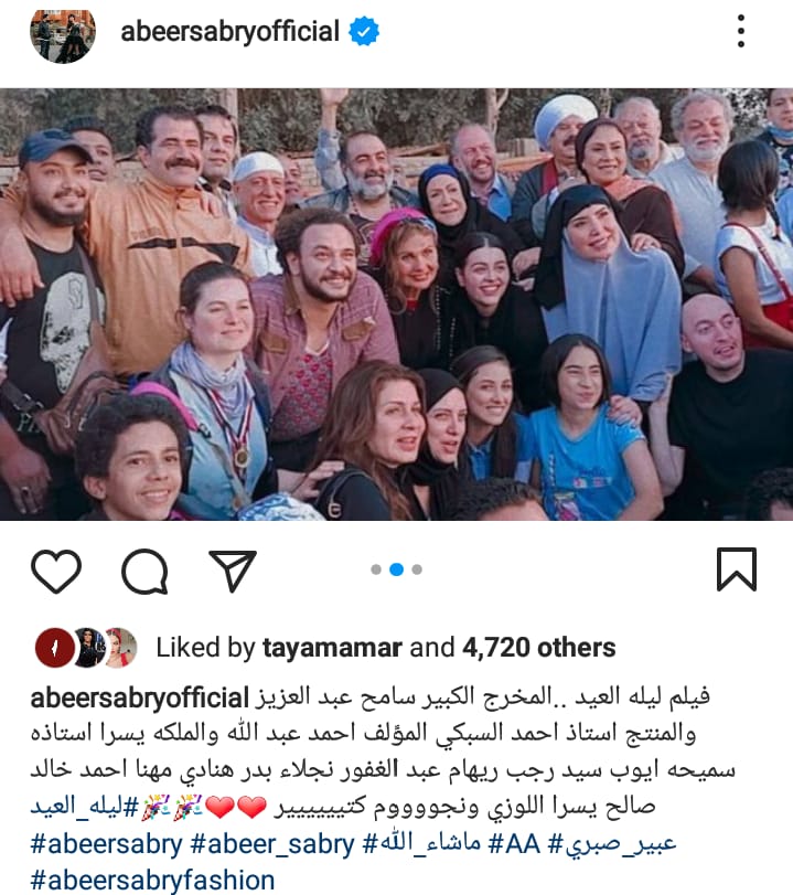 شاركت الفنانة عبير صبري جمهورها صورًا جديدة من كواليس فيلمها الجديد "ليلة العيد"، وهو من تأليف أحمد عبد الله، وإخراج سامح عبد العزيز، وإنتاج أحمد السبكي.