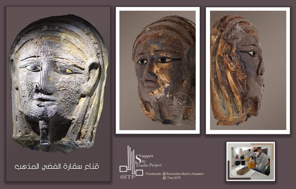 ونشر رمضان عبر صفحته الرسمية على الفيس بوك “صورة للقناع قبل وبعد الترميم”، قائلًا: "لكل قطعة أثرية، كبيرة أو صغيرة، جميلة أو ما خالف ذلك، أهميتها في تحديد تطور المجتمع المصري القديم فكريًا، لكن هناك قطع تشغل مكانا بقلوب مكتشفيها لندرتها وعظيم صناعتها ومنها “قناع سقارة الفضي المذهب”.