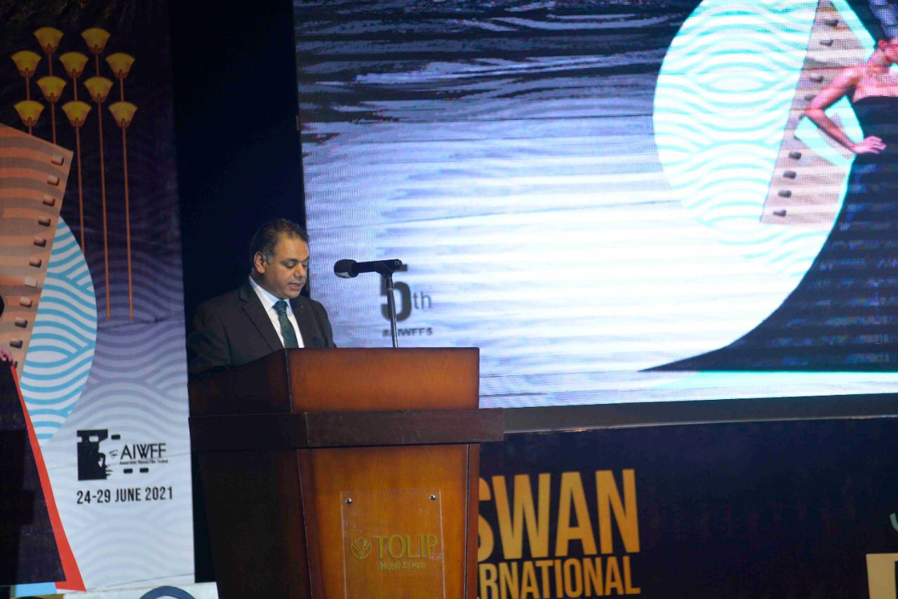 وقد ألقى أحمد يوسف كلمة وزارة السياحة والآثار أمام جموع الحفل، مؤكدًا أهمية هذا المهرجان ودوره الفعال في مد جسور التواصل وتبادل الثقافات والخبرات بين مختلف شعوب العالم، واختيار محافظة أسوان عاصمة الشباب الإفريقي، نظرًا لما تتمتع به المحافظة من مقومات سياحية وأثرية وبيئية متميزة وجاذبة، ما يضفي زخمًا فنيًا وثقافيًا ويجعلها نقطة إشعاع بارزة في الوسط الفني على الساحة المحلية والعالمية.