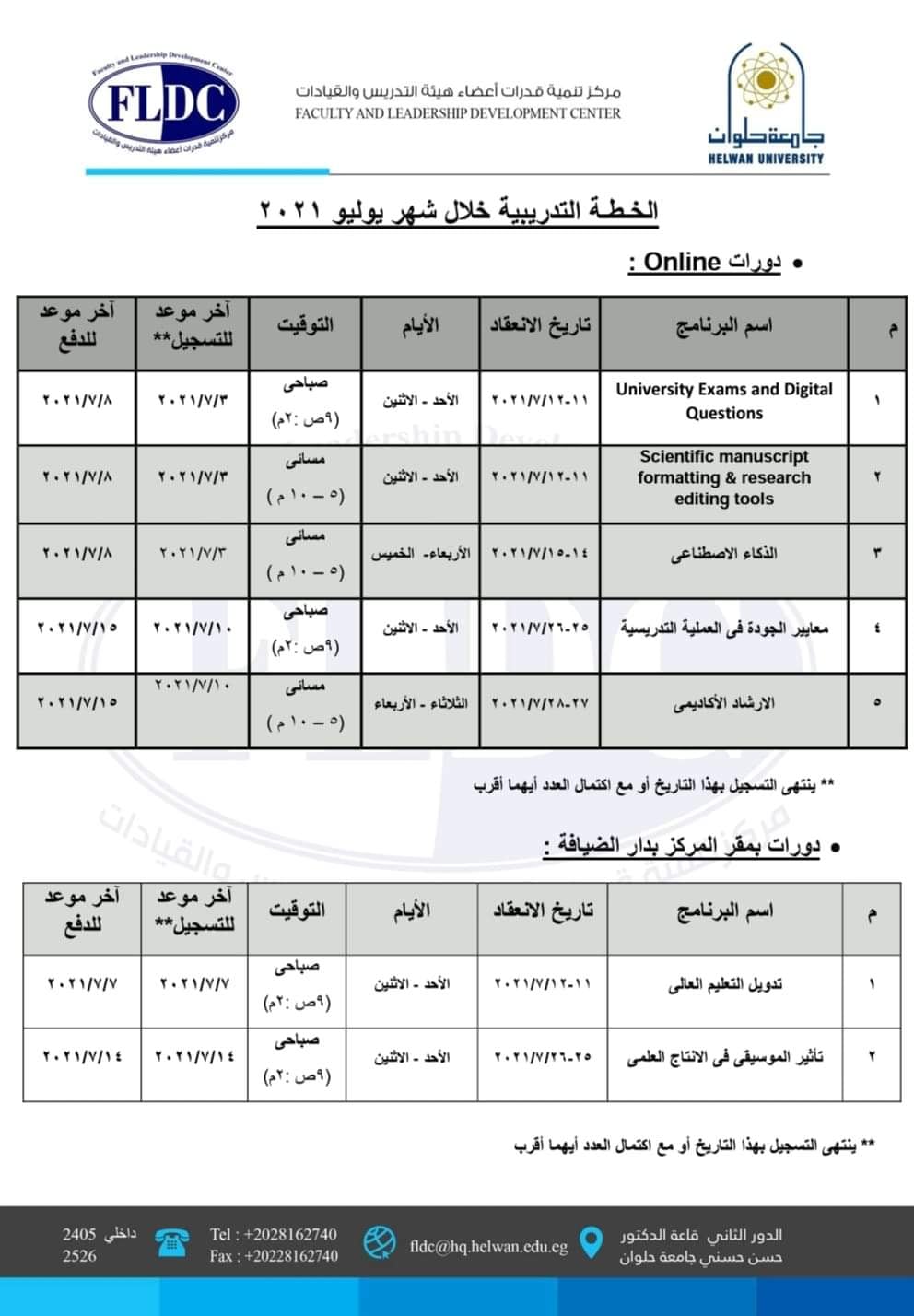 مركز تنمية القدرات بجامعة حلوان يعلن خطته التدريبية خلال شهر يوليو