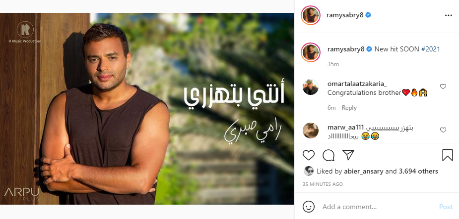 ونشر رامي صبري عبر حسابه الرسمي بموقع الصور والفيديوهات “انستجرام” بوستر الأغنية وعلق عليها قائلًا: “أغنيتي الجديدية.. قريبًا في 2021”.