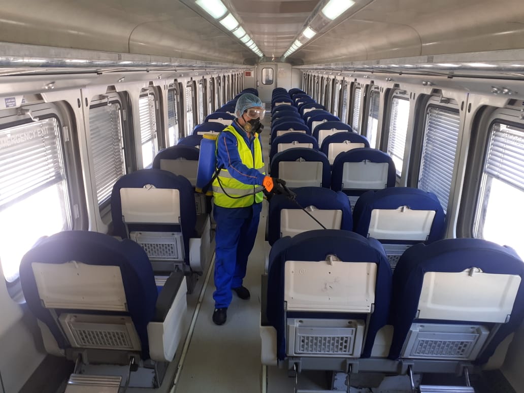 وشملت عمليات التعقيم قطارات الوجهين القبلي والبحري، فضلًا عن تعقيم المحطات التابعة للسكة الحديد خاصة فيما يتعلق بمكاتب الحجز بالتزامن مع إقبال ركاب الجمهور لحجز تذاكر لقطارات عيد الفطر المبارك.