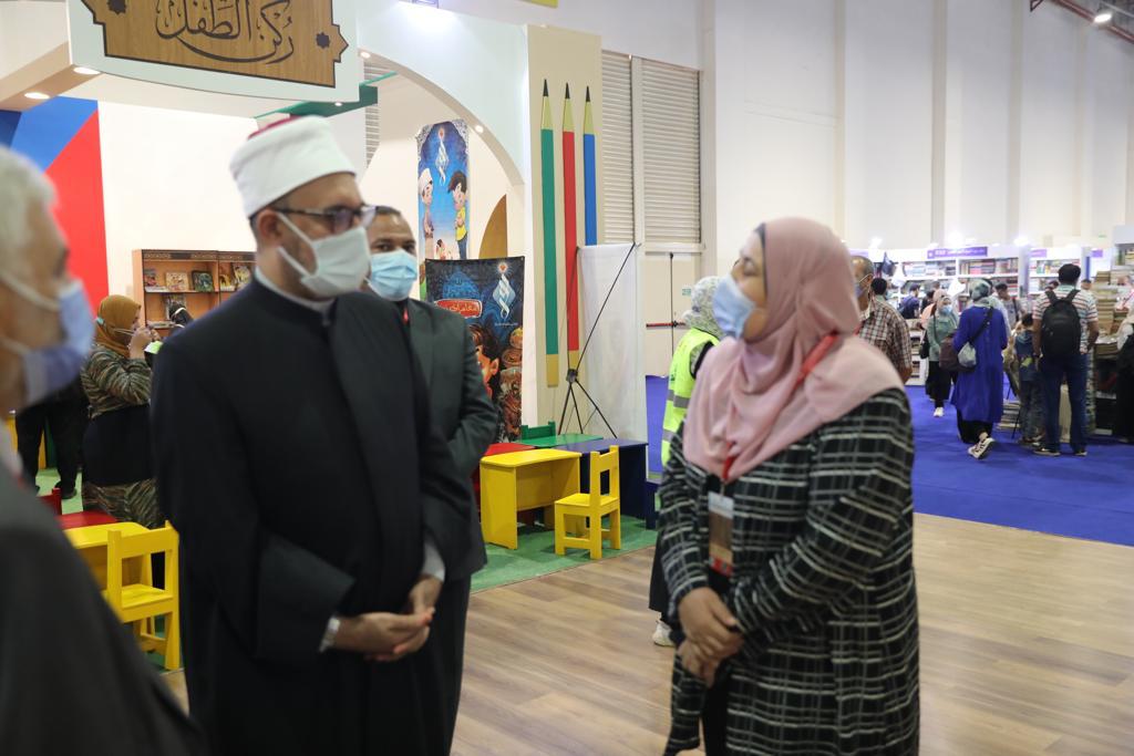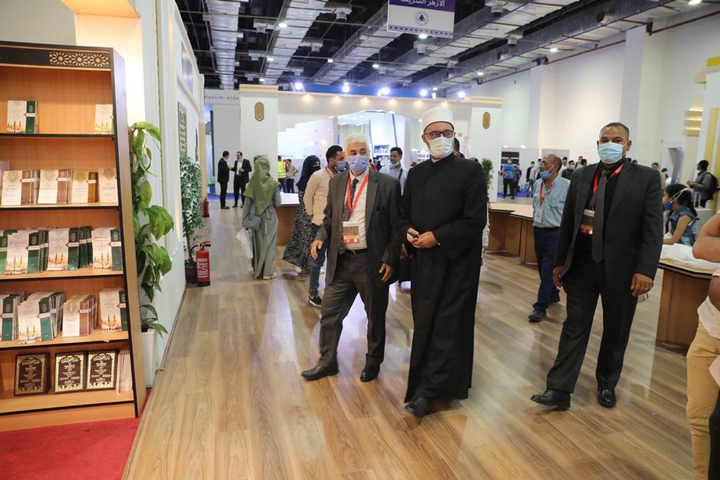 وتفقد الأمين العام لمجمع البحوث الإسلامية، أركان الجناح وإصداراته الحديثة وورش العمل، ومقر الندوات الافتراضية التي تبث عبر صفحة الأزهر على الفيس بوك يوميا، وفعاليات وأنشطة الخط العربي والرسم والتلوين، وركن الأطفال وركن الفتوى.