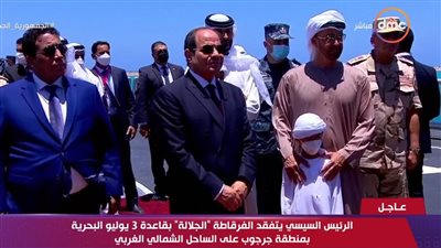 وجه الرئيس عبد الفتاح السيسي بتصوير أحفاد ولي عهد أبوظبي الشيخ محمد بن زايد مع الطائرات العسكرية، وذلك أثناء افتتاح قاعدة 3 يوليو البحرية.