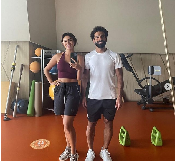 وعلقت الفنانة الهندية على الصور التي جمعتها بمحمد صلاح والتي نشرتها عبر حسابها بموقع تبادل الصور والفيديوهات: "في الجيم مع أفضل لاعب في العالم".
