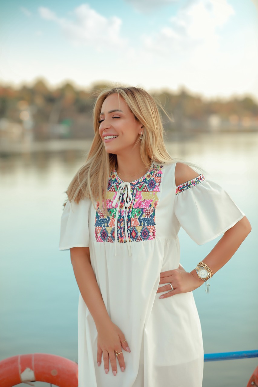 وتألقت ريم البارودي خلال جلسة التصوير بإطلالة هادئة وبسيطة مرتدية جلباب ليناسب الأجواء النيلية في أسوان، واعتمدت على ماكياج هادئ أبرز جمال وجهها، وشعر منسدل على كتفيها.