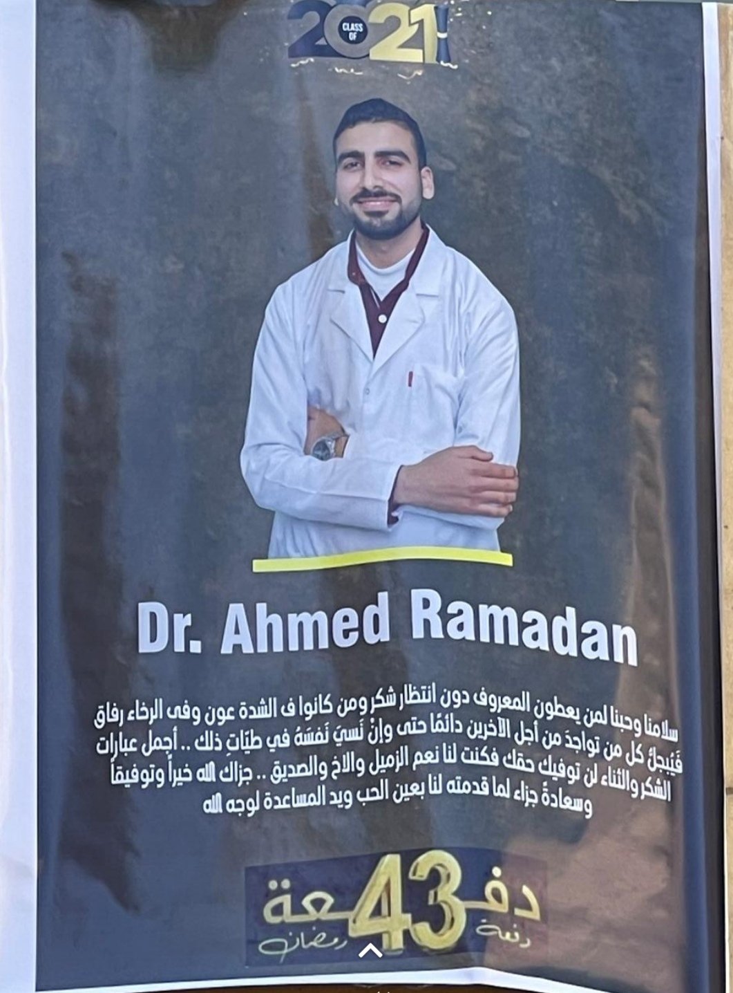"انت مش حاجه عادية، النسخة الأصلية".. عندما يتواجد طالب متفوق وخلوق ولين ف أسلوبه بين زملاؤه أثناء فترة الدراسة، فإنه يكون بمثابة بابًا للتهوين عليهم من صعوبة الطريق المؤدي للهدف، وجاءت دفعة 43 لكلية الصيدلة، جامعة الزقازيق، لعام 2021، لتخرج الدكتور أحمد رمضان، ويصبح مثالا يقتدى به في كلية الصيدلة.