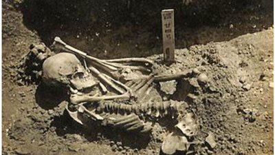 وأكد ليدر أن الشقوق المنحوتة في العظام يبلغ طولها ما بين نصف بوصة وبوصة، ويتم ضبطها بزاوية 90 درجة، مما يعني أنها ليست قطع من نوع الجزارة.