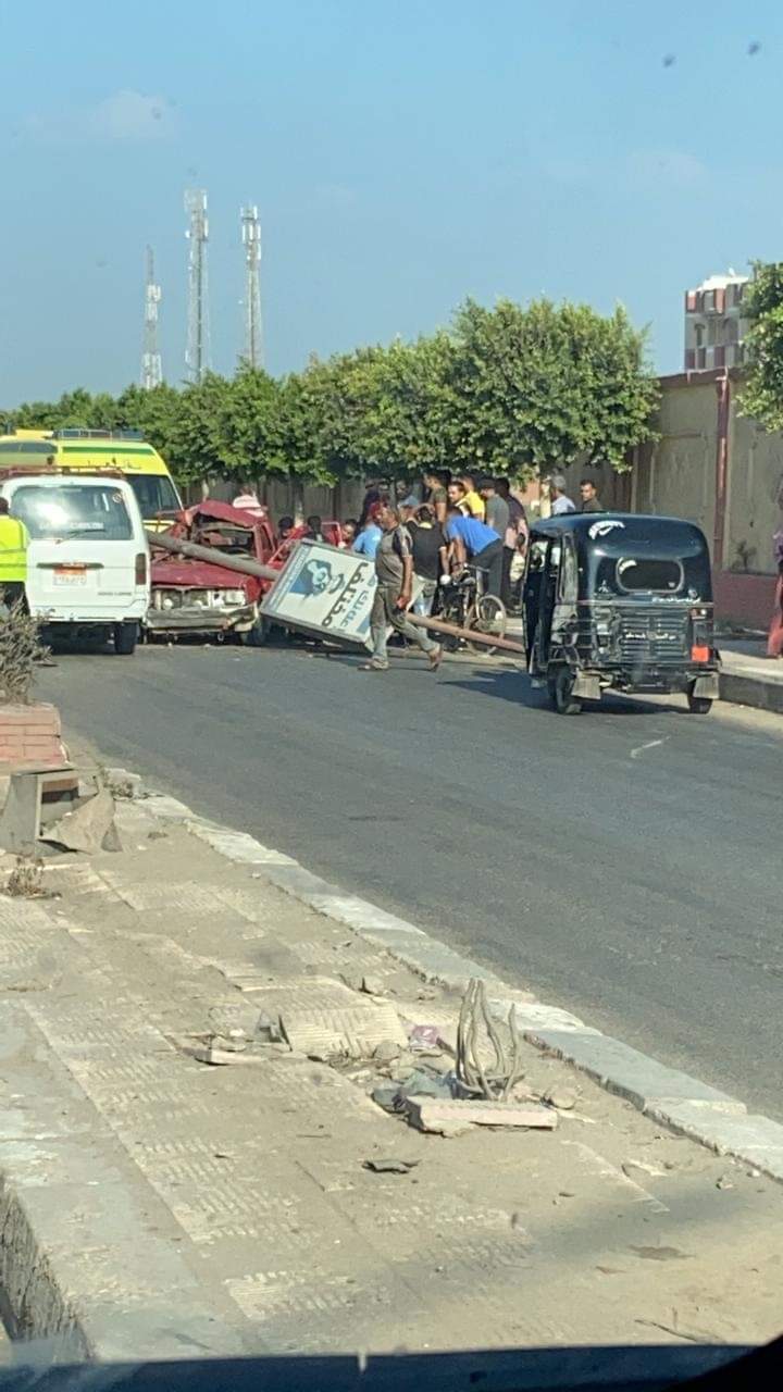 على الفور انتقلت القيادات الأمنية وقوات من الشرطة السرية والنظامية إلى محل البلاغ وتبين سقوط عمود الإنارة نتيجة لقدمه وتهالكه، على سيارة ميكروباص محملة بالركاب، وسيارة ربع نقل، وإصابة سائق الأخيرة، ونقله إلى مستشفى كفرالزيات العام، وتم رفع العمود وتحريك السيارتين.