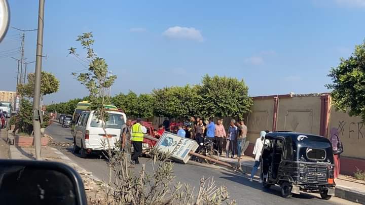 شهدت مدينة كفر الزيات بمحافظة الغربية، سقوط عمود إنارة على سيارتين أمام شركة الزيوت والصابون، مما أدى إلى توقف حركة المرور وإصابة سائق سيارة نصف نقل وجرى نقله إلى مستشفى كفر الزيات العام.