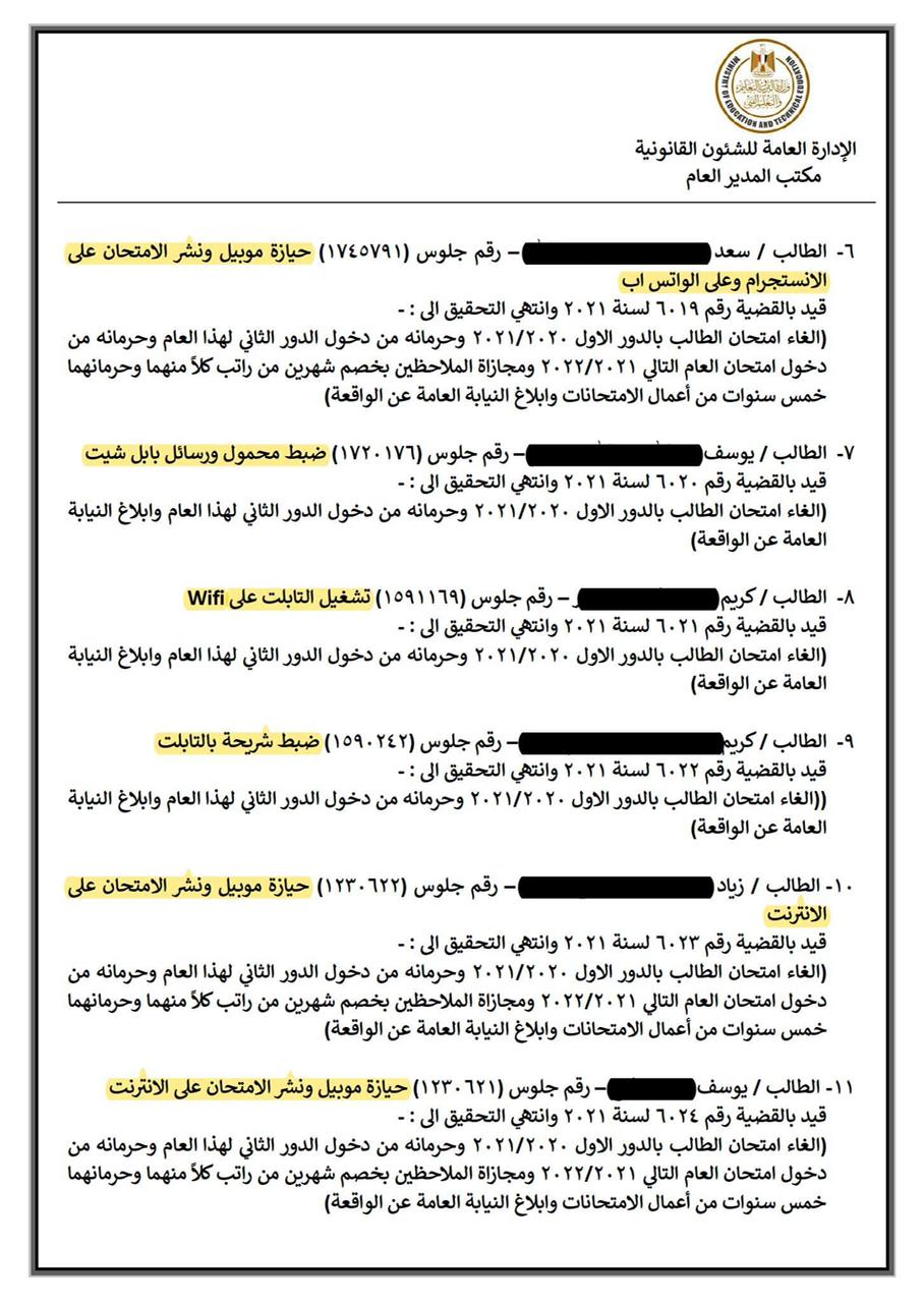 وكشف شوقي في منشور عبر صفحته على موقع التواصل الاجتماعي "فيسبوك"، عقوبات الحالات التي تم رصدها من غرفة عمليات الثانوية العامة، حيث شملت أغلب العقوبات إلغاء الامتحان وحرمان من دخول الدور الثاني للامتحانات.