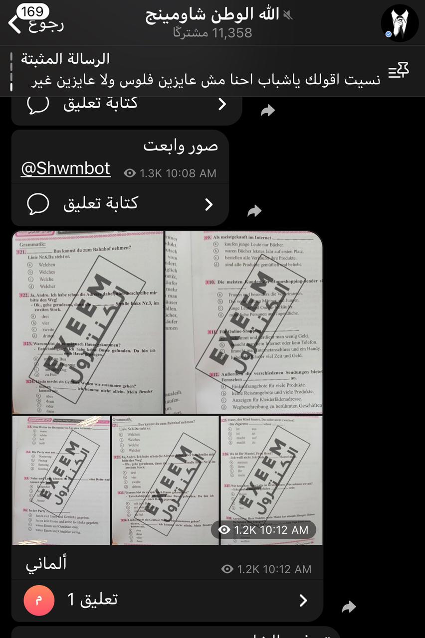 زعمت بعض صفحات وجروبات تطبيق “تليجرام”، بتسريب عدد من أسئلة امتحان اللغة الأجنبية الثانية للشعبة الأدبية للثانوية العامة عبر مواقع التواصل الاجتماعي.