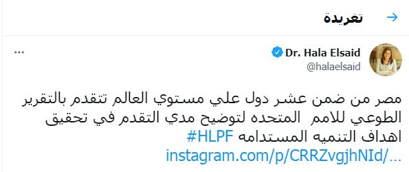 وأضافت وزيرة التخطيط، عبر حسابها الخاص على موقع التواصل الاجتماعي "تويتر" أن التقرير الطوعي؛ بهدف توضيح مدى التقدم في تحقيق أهداف التنمية المستدامة.