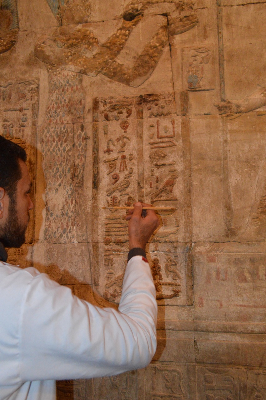 مدير معبد دندرة بقنا يكشف المواد المستخدمة في تنظيف وترميم المناطق الأثرية