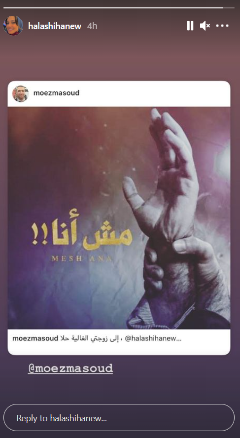 و أيدت حلا شيحة، حديث زوجها الداعية معز مسعود عنها، وأعادت حلا نشر المنشور الذي كتبه زوجها عنها على حسابه الشخصي بـ "انستجرام" مدافعًا عن قراراتها الأخيرة وتبرؤها من مشاهدها في فيلمها مع تامر حسني.