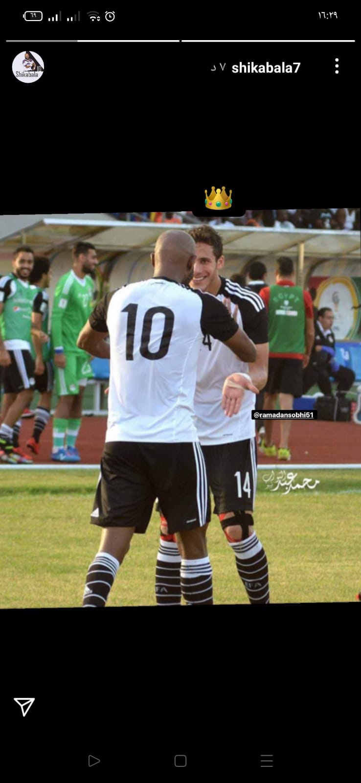 ووضع قائد الزمالك صورة له مع رمضان صبحي في المنتخب الأول وقت تواجد شيكابالا، ووضع علي الصورة ما يشبه صورة لتاج الملك في رسالة دعم للاعب.