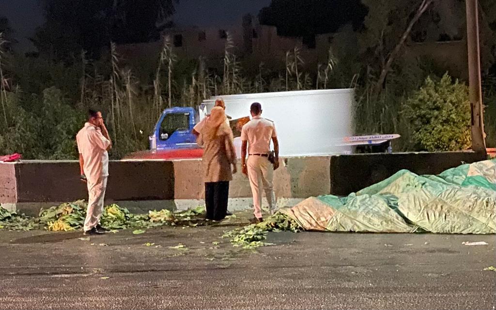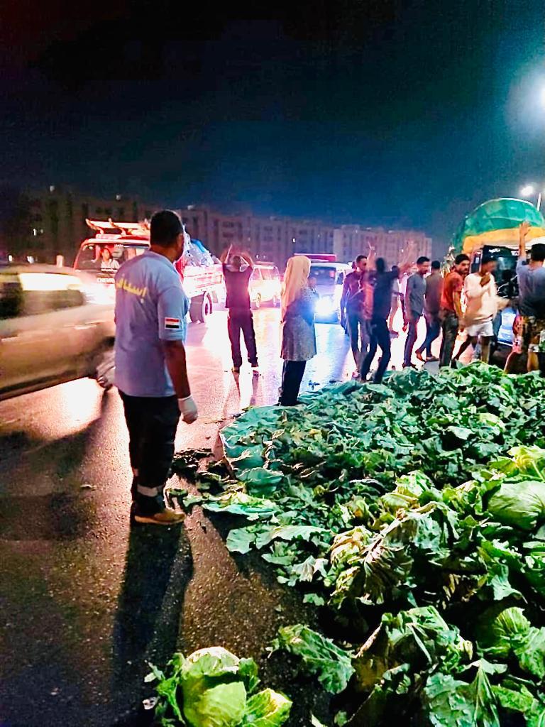 انقلاب سيارة محملة بالخضراوات على الطريق الزراعي أمام مدينة قها (صور)