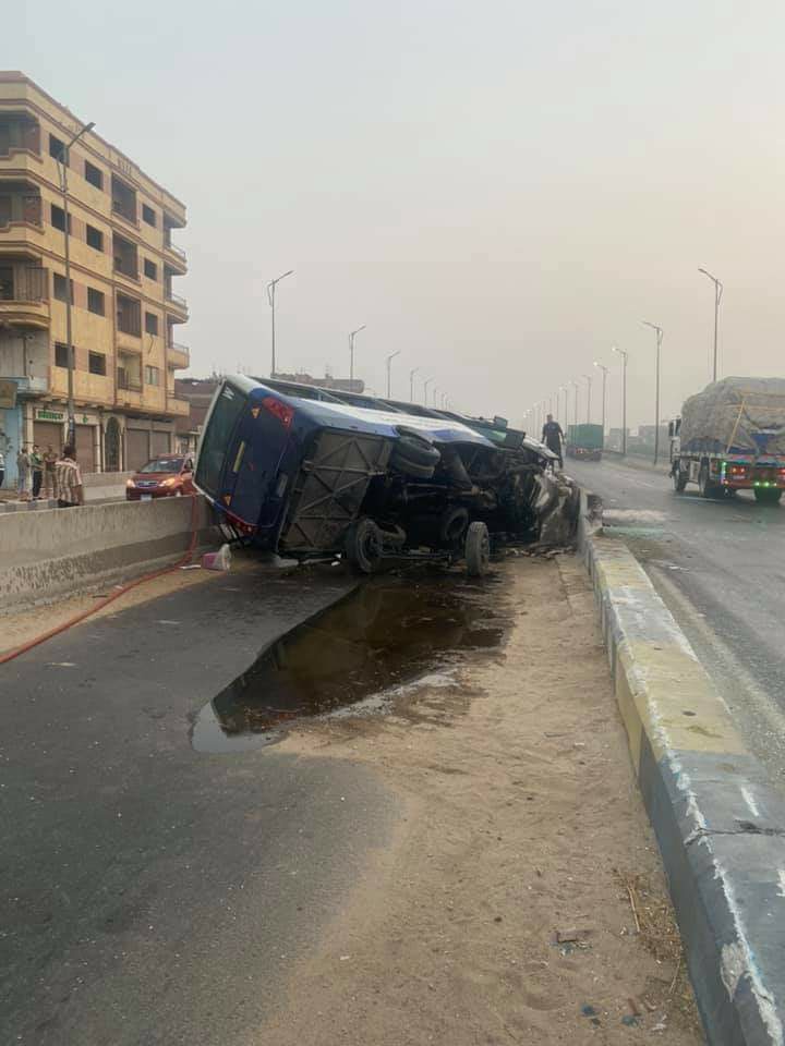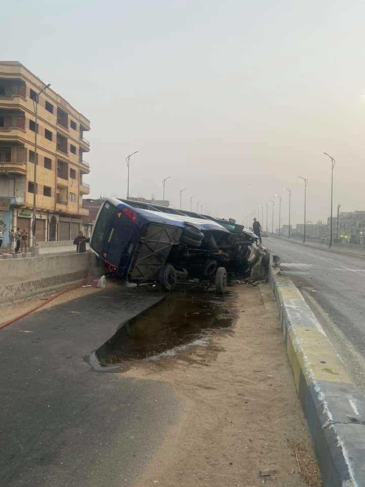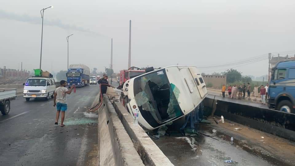 وأوضحت التحريات أن الأتوبيس اصطدم بأحد الحواجز الخراسانية بطريق كوبري صهرجت، ما أدى إلى انقلابه.