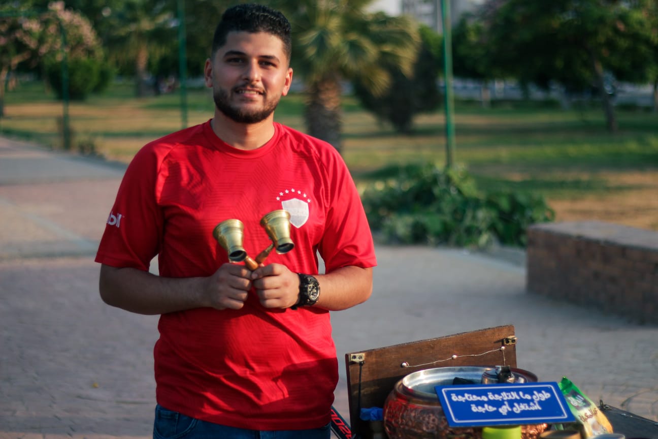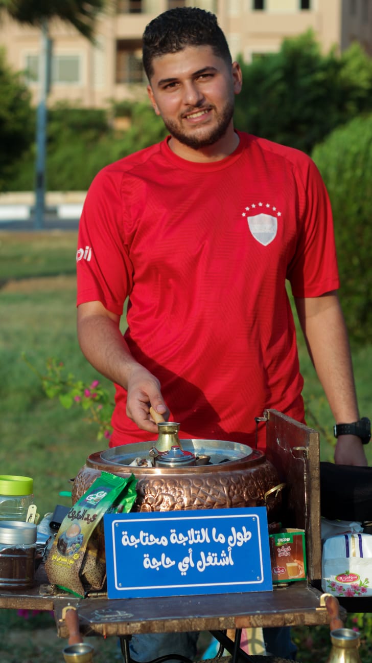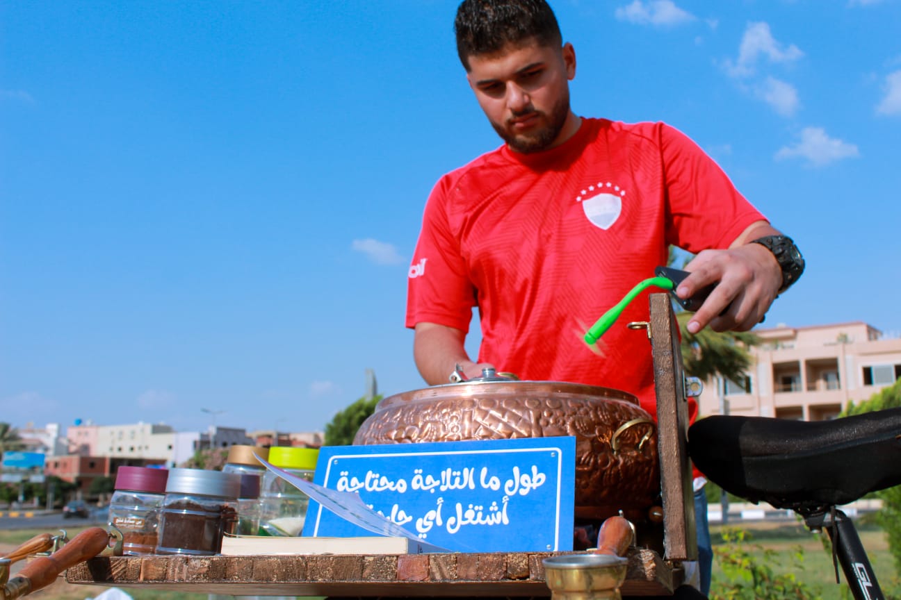 طالب جامعي يبيع القهوة على دراجة متحركة: "طول ما التلاجة محتاجة اشتغل أي حاجة"