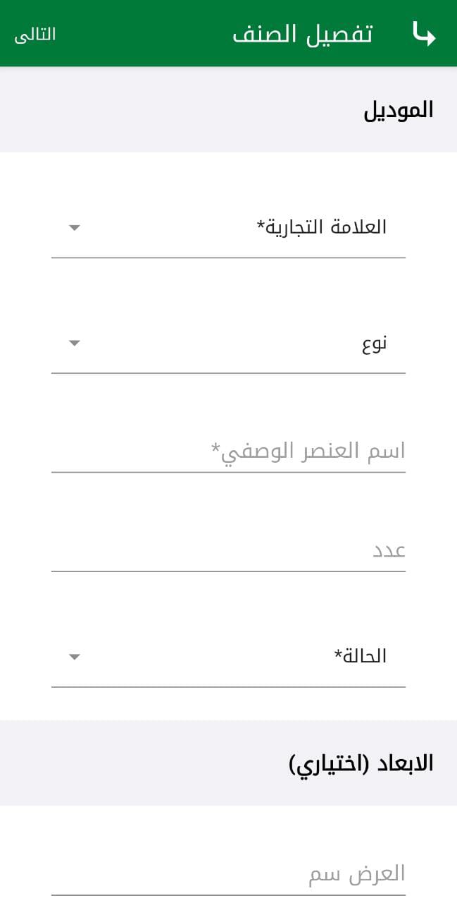 6- املأ البيانات الخاصة به من حيث النوع والعلامة التجارية التابع لها وحالته.