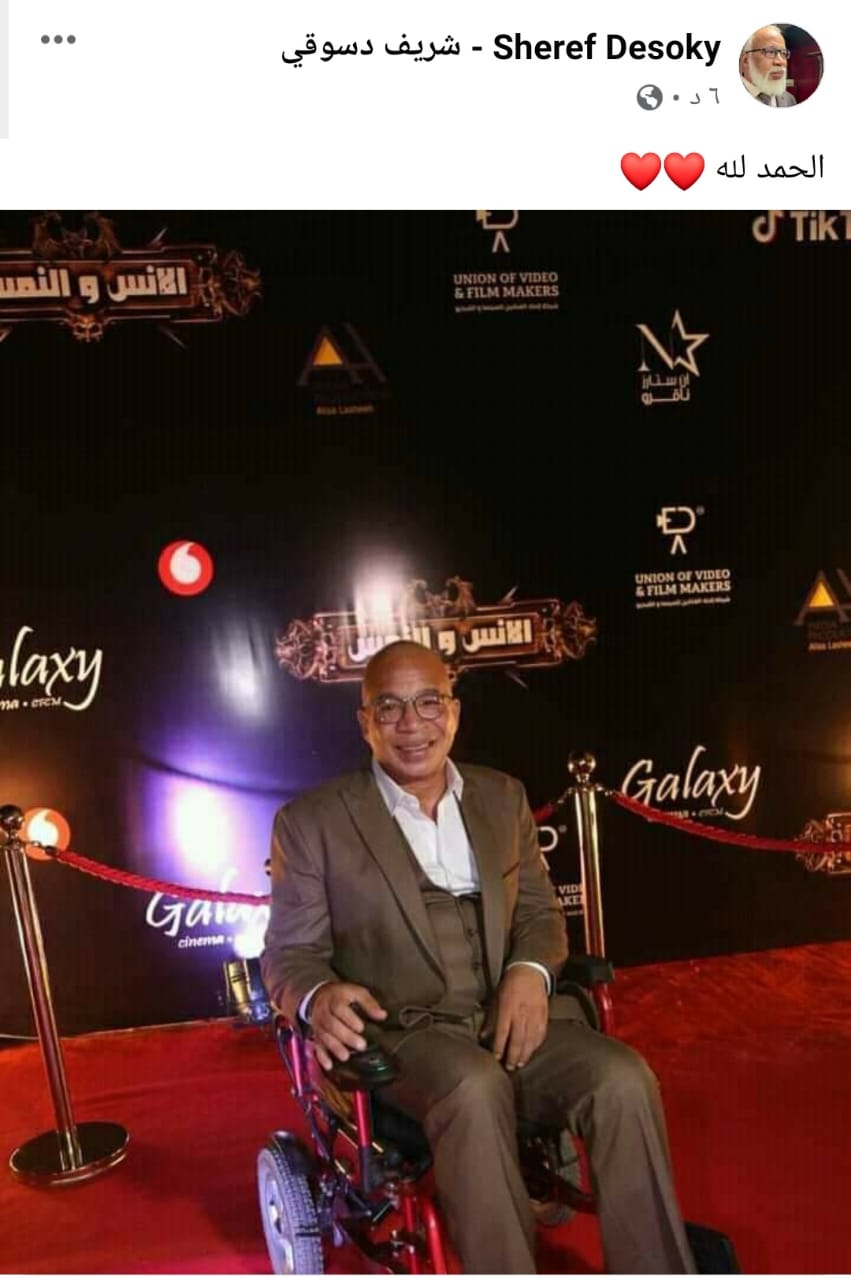 ونشر شريف صورة له من كواليس العرض، ظهر من خلالها على كرسي متحرك ويبتسم، وذلك عبر حسابه الشخصي بموقع التواصل الاجتماعي فيس بوك، وعلق عليها قائلا: الحمد لله.