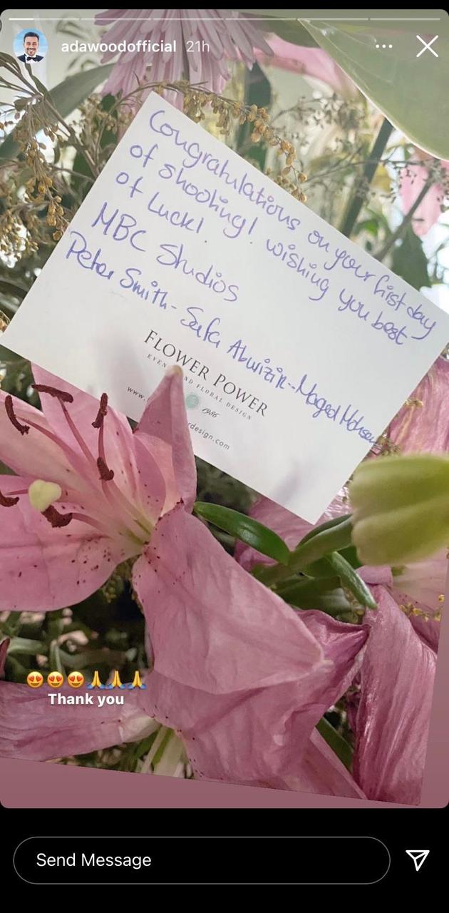 وفي منشور آخر كشفت عن بوكيه آخر من ستوديوهات mbc، والذي كشف تهنئة الستوديو لـداوود بعد أول يوم تصوير من المسلسل، مع التمنيات بنجاح المسلسل.