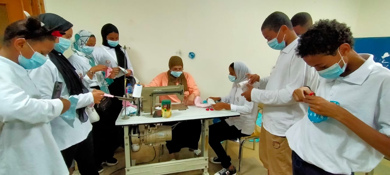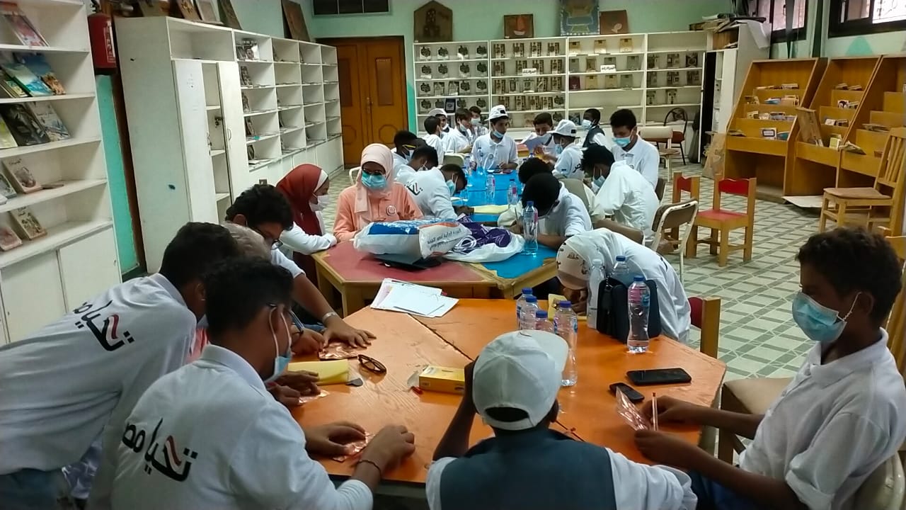 واستكملت ورش النحاس والكلينكان أعمالها الفنية، بالإضافة لورشة الحلي بالخرز لعمل شنطة تحت إشراف منى عبد الوهاب وورشة حياكة لعمل كمامات من الأقمشة تحت إشراف نجوى عبدالعزيز، كما نفذ الفنان عمرو حمزة لقاء مع الأطفال المشاركين بروفة على كيفية تحريك عرائس العمل المسرحي.