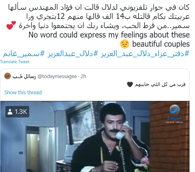 ونشرت حسناء فيديو للراحلة مع زوجها سمير غانم، معلقة:" كان في حوار تلفزيوني لدلال قالت إن فؤاد المهندس سألها عربيتك بكام قالتله بـ14 ألف قالها منهم 12 بتجري ورا سمير.. من فرط الحب، ويشاء ربك أن يجتمعوا دنيا وآخرة".